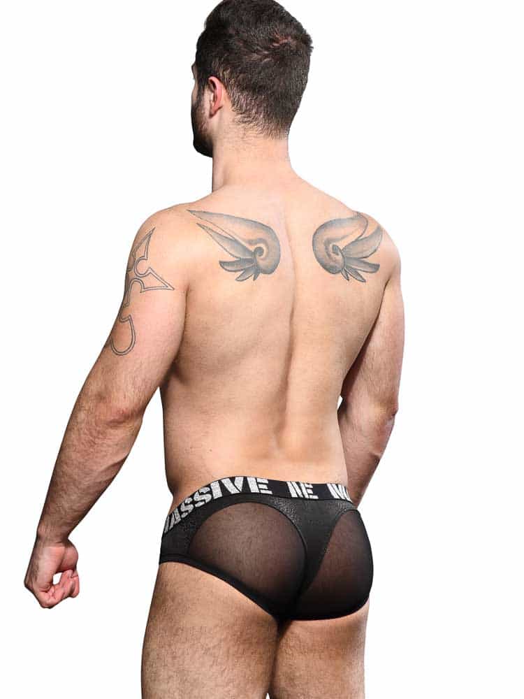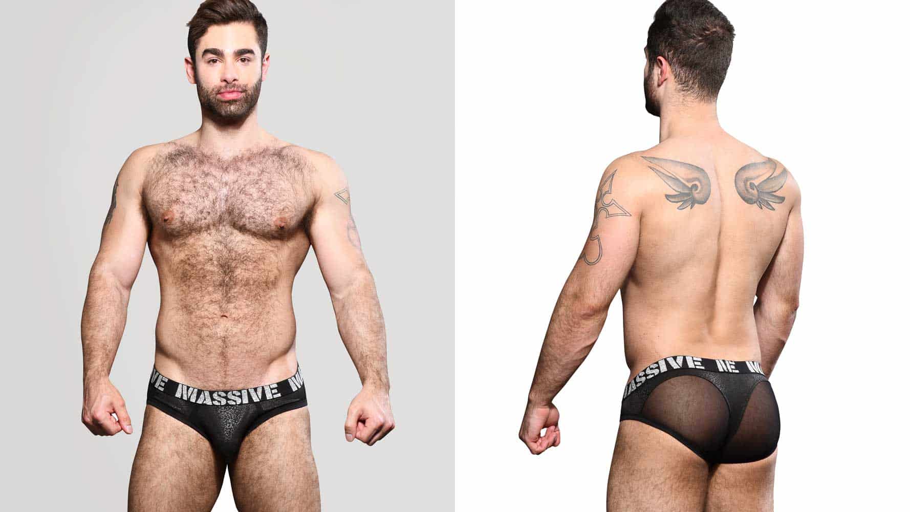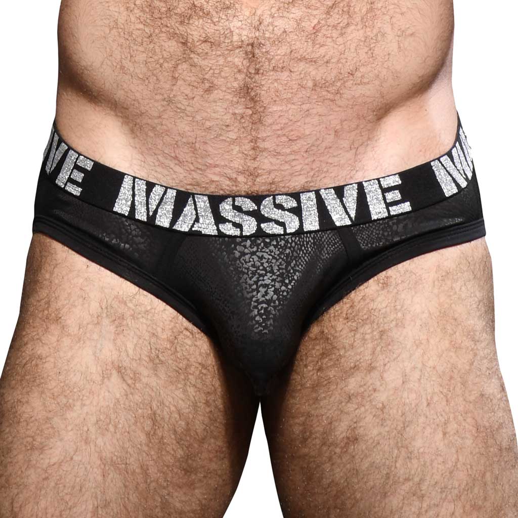 The Massive to brief od Andrew Christian. Bielizna z serii 'ALMOST NAKED®' jest dobrze znana ze swojej anatomicznej kieszeni, która daje uczucie, że prawie nic nie nosisz, gdy masz ją na sobie. Jest wykonana z poliestru z dodatkiem elastanu, dzięki czemu jest super miękka w dotyku, elastyczna i lekko błyszcząca. Brief ma wyszczuplający pas. Jest dostępny w czerni.