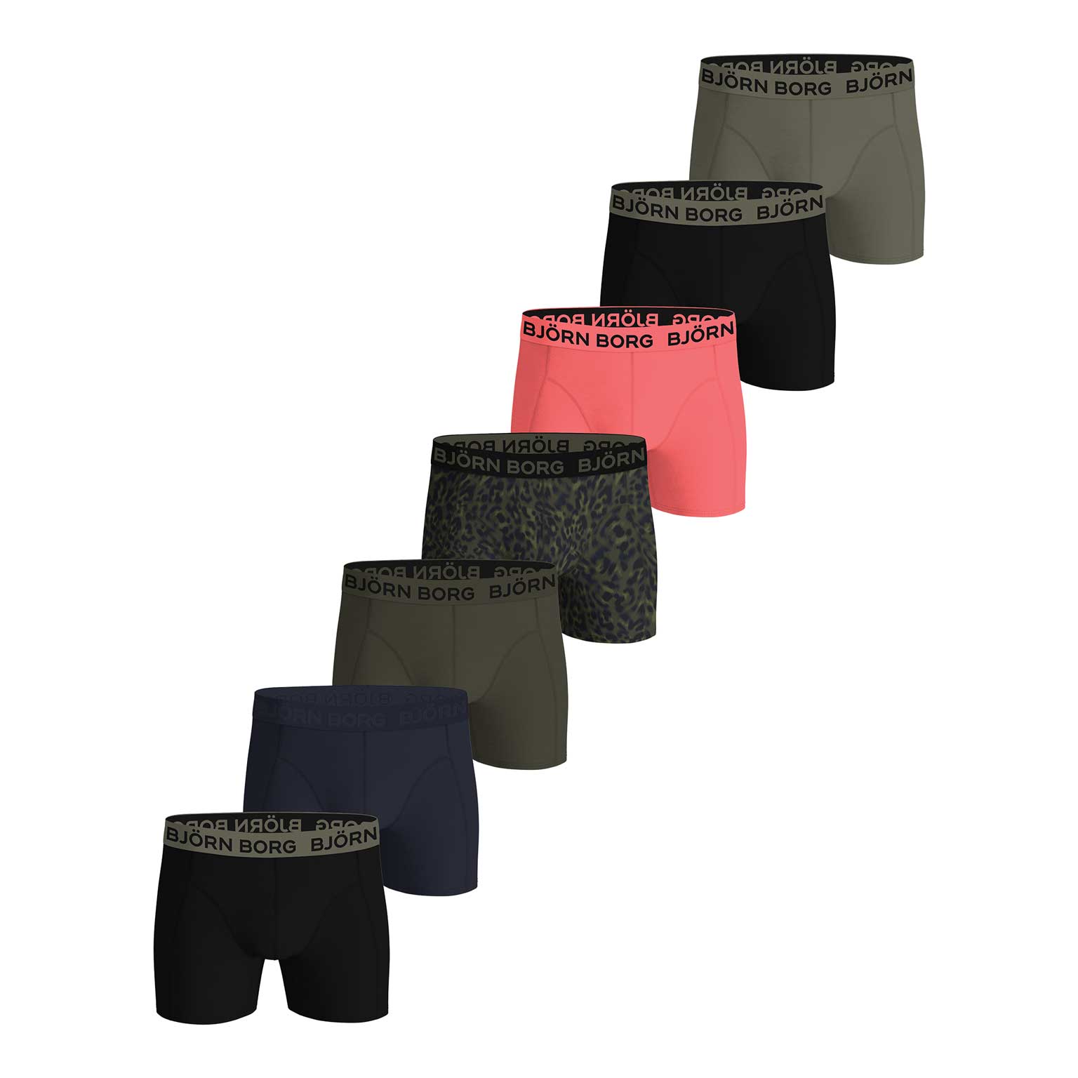 Ten zestaw 7 bokserek od Björn Borg to idealny wybór dla mężczyzn, którzy cenią sobie wygodę, jakość i sportowy styl. Dzięki miękkiej bawełnie z dodatkiem elastanu bielizna doskonale dopasowuje się do ciała, oferując wsparcie i komfort. Materiał oddychający sprawia, że pozostajesz świeży przez cały dzień. Praktyczna i stylowa opcja na każdy dzień tygodnia.