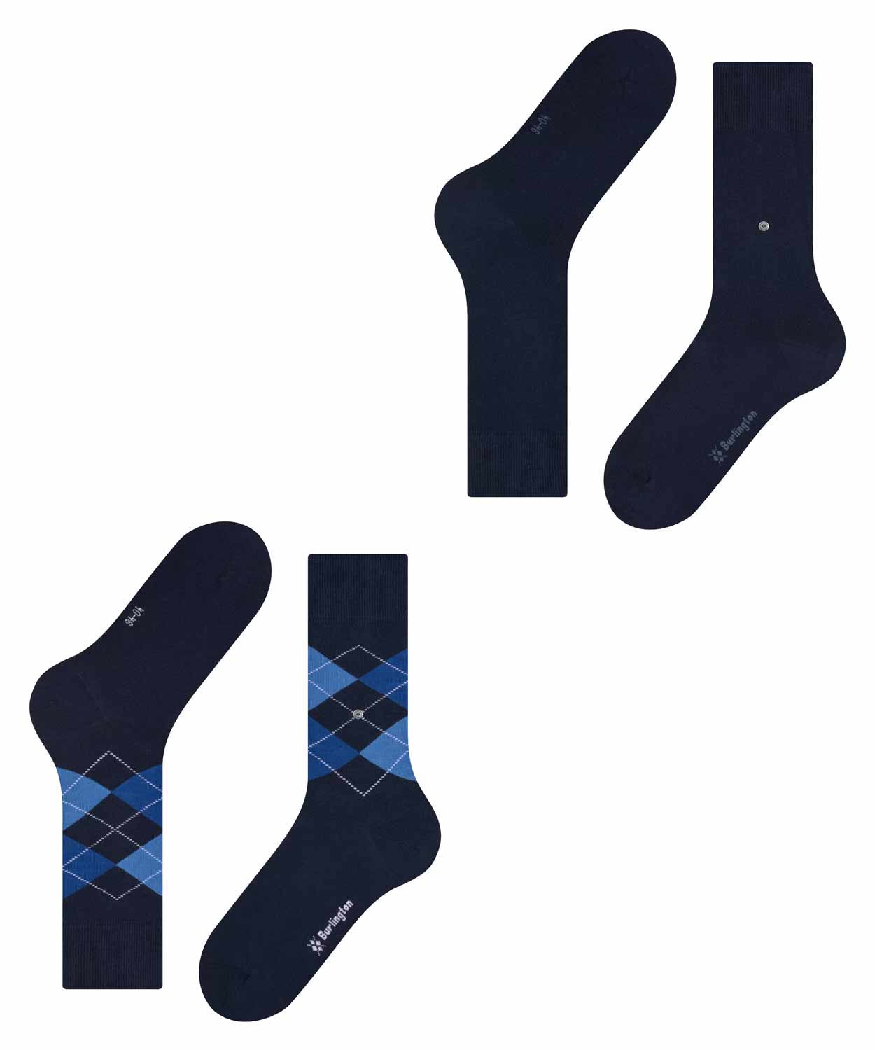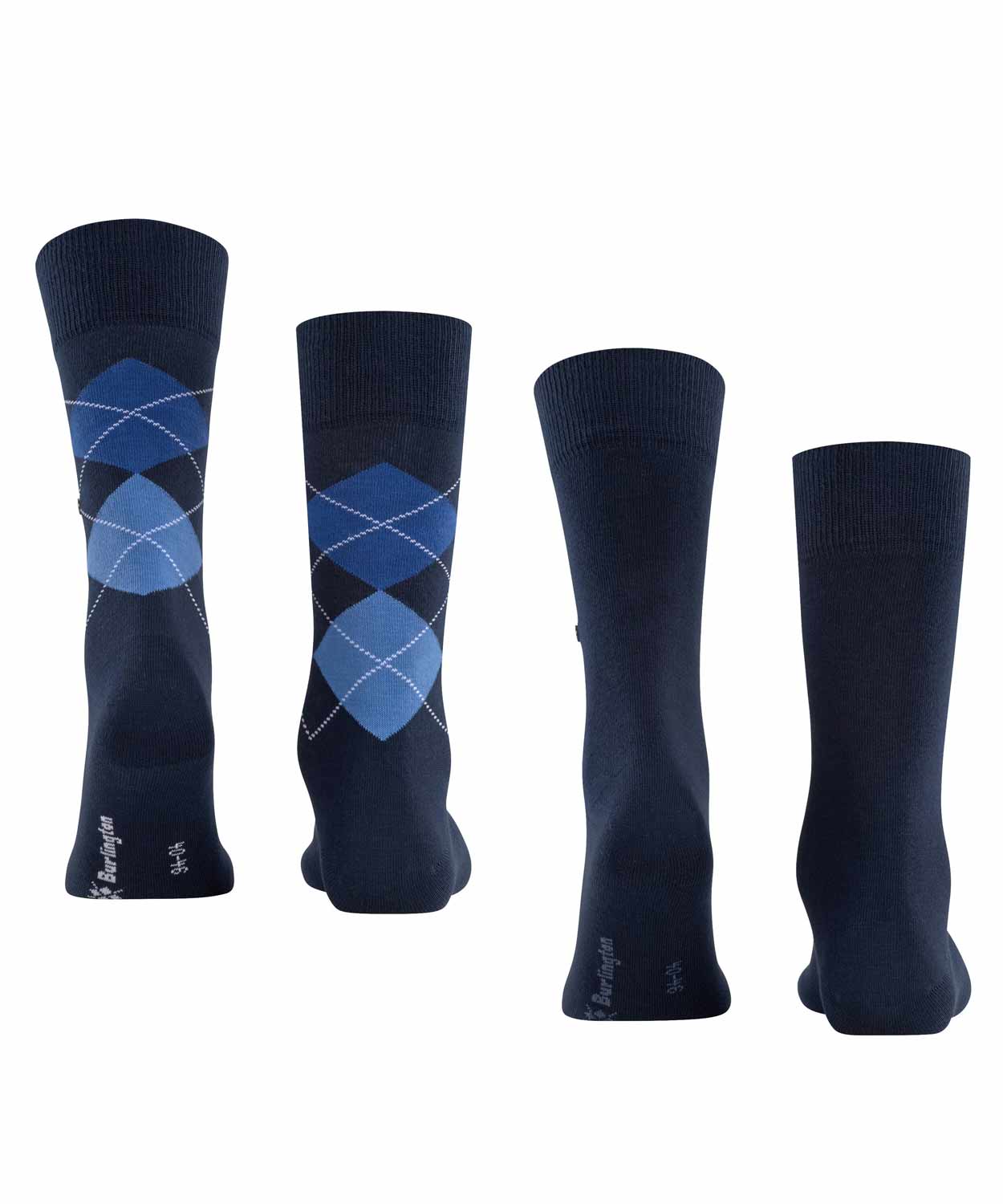 Zestaw promocyjny Burlington zawierający dwie pary skarpet, jedną w jednolitym kolorze, a drugą z charakterystycznym wzorem w kratę Burlington. Skarpetki wykonane są z czesanej bawełny zmieszanej z poliamidem. Wygodna skarpetka do codziennego użytku.