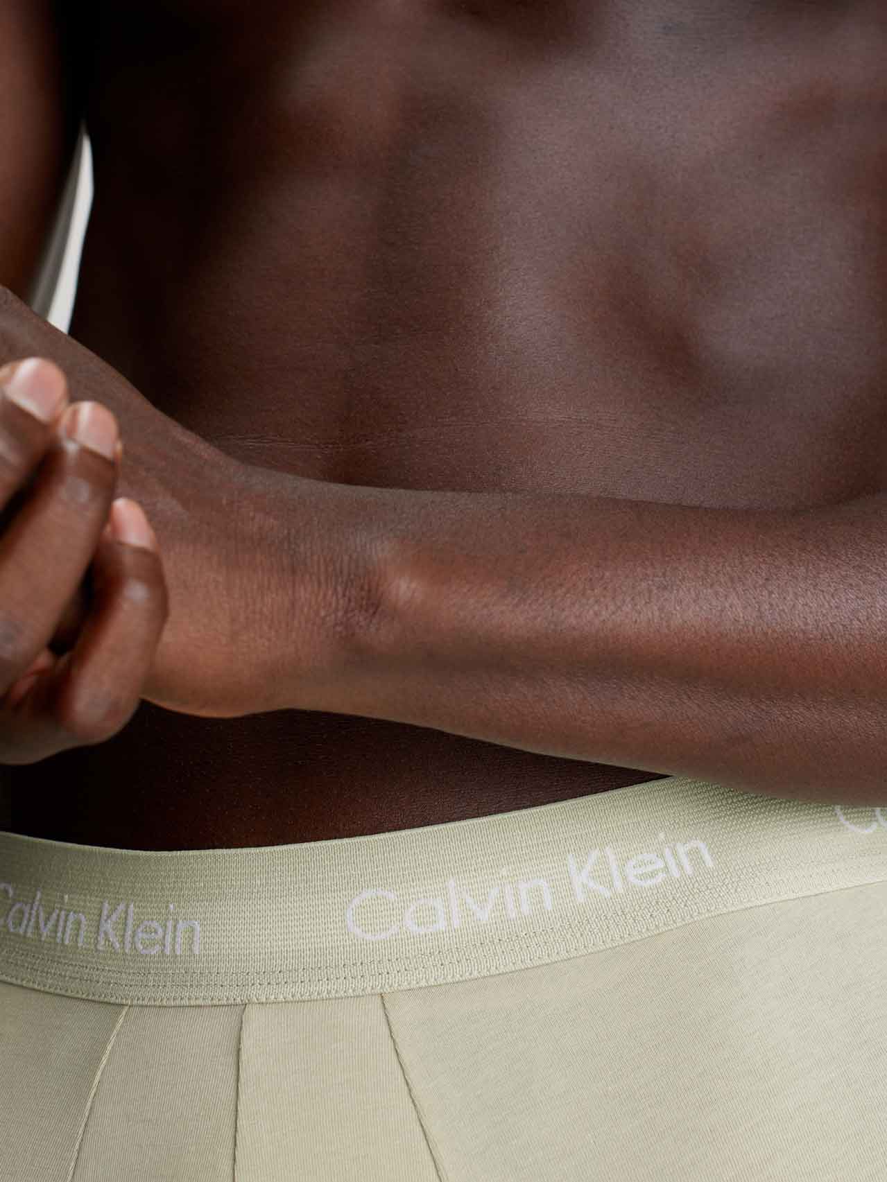 3-pak z serii Cotton Stretch firmy Calvin Klein. Te bokserki Calvin Klein mają niski krój, dzięki czemu nosi się je nisko na biodrach. Trunksy wykonane są z miękkiej, wygodnej bawełny z dodatkiem elastanu, co zapewnia długotrwałe dopasowanie. W pasie znajduje się logo Calvin Klein wokół całego obwodu. Piękny zestaw bokserek, dostępny w różnych kombinacjach kolorystycznych, aby odświeżyć Twoją szufladę z bielizną.