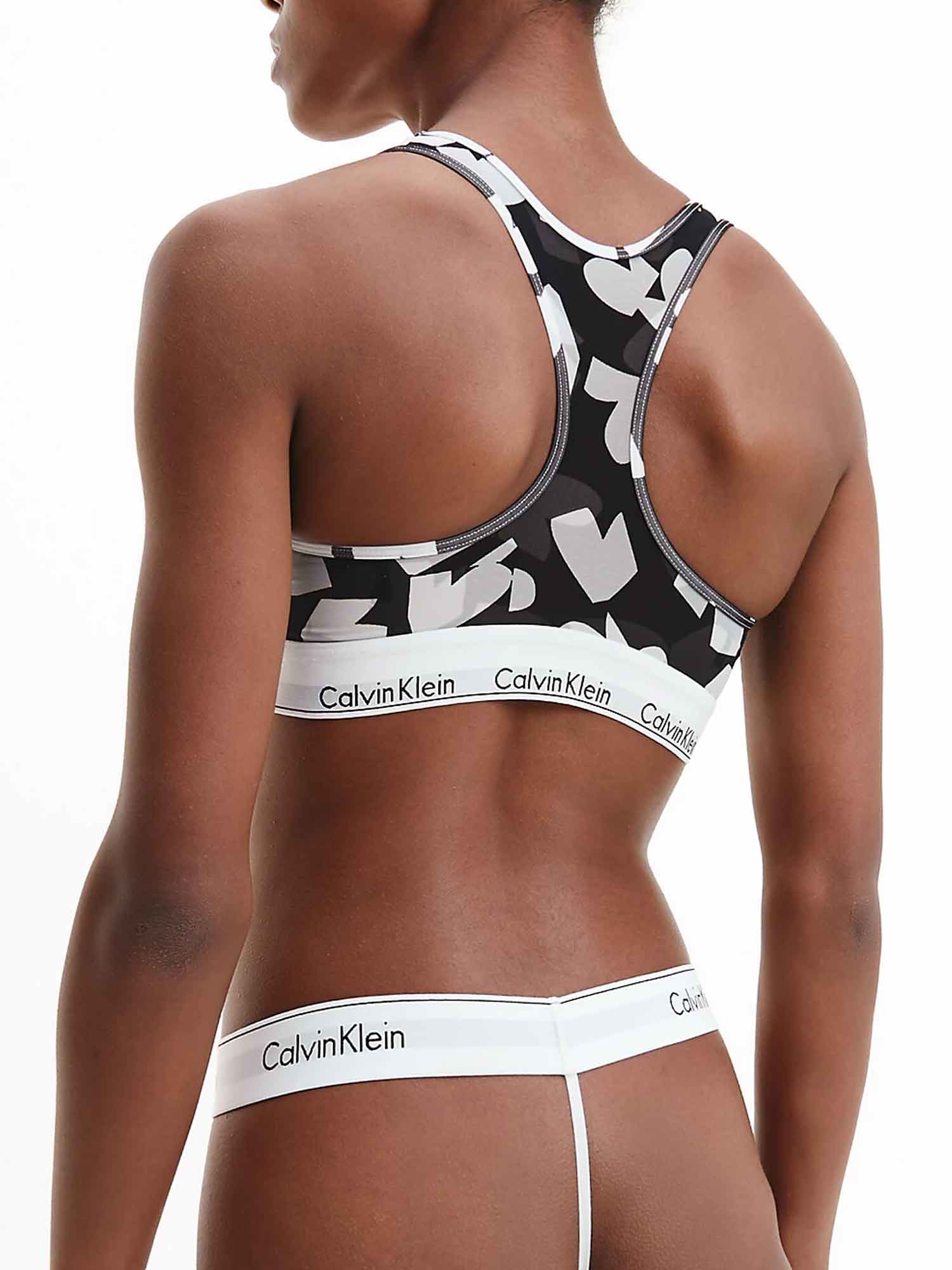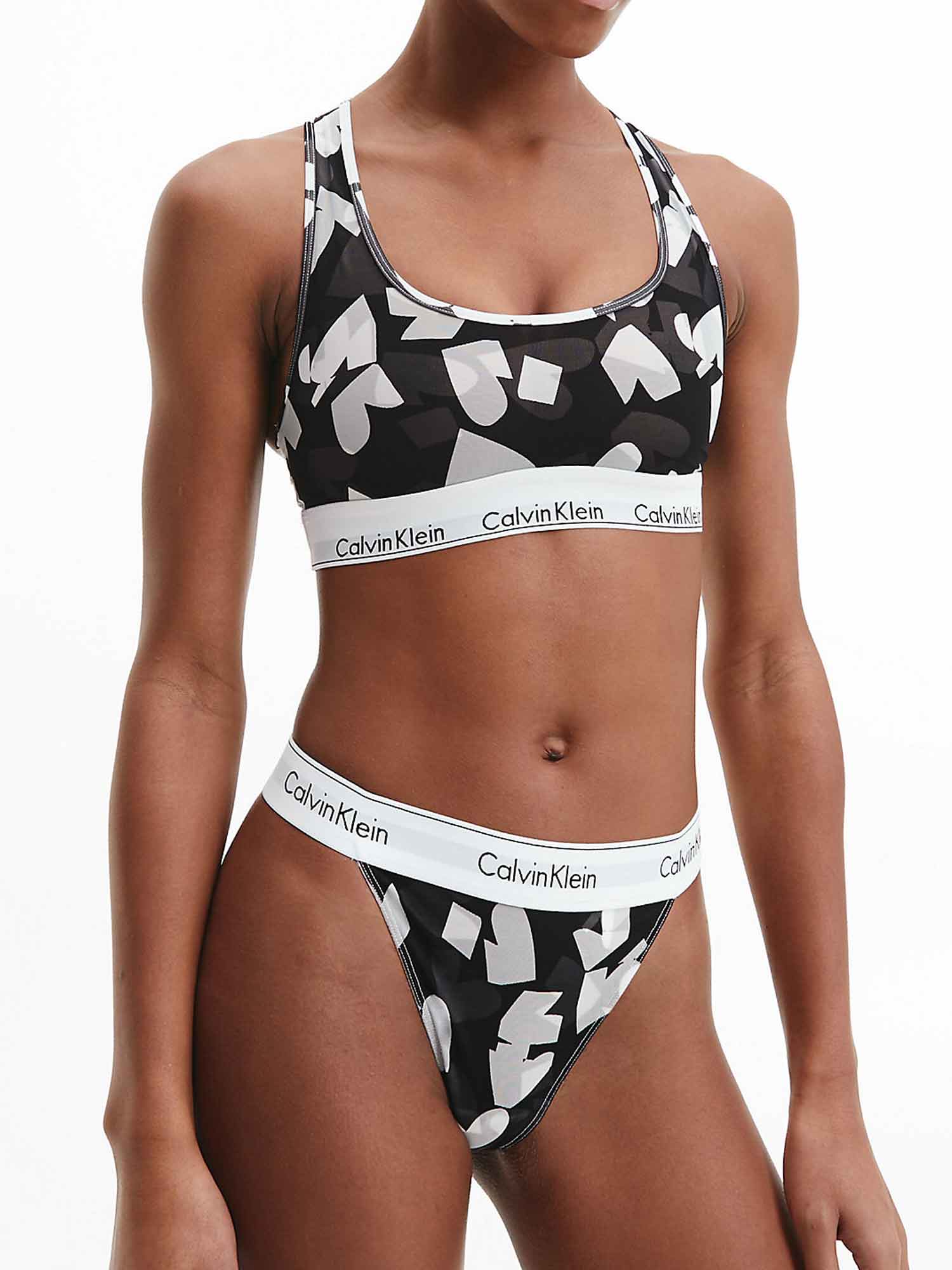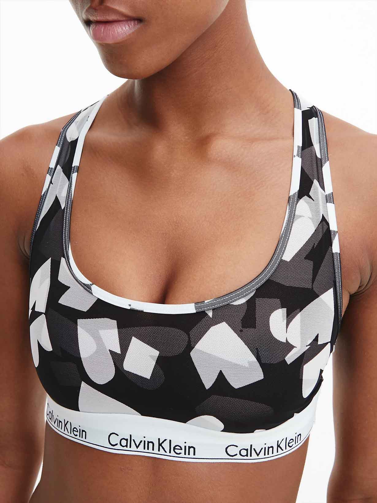 Ciesz się tą damską braletką od Calvin Klein. Wykonana z bawełny, modalu i elastanu, ta braletka doskonale oddycha i zachowuje swój kształt na długi czas, podczas gdy modal sprawia, że materiał jest miękki przeciwko skórze. Z charakterystycznym logo Calvin Klein wokół dolnej części tego topu, ta elastyczna taśma utrzymuje braletkę na miejscu. Dostępna w efektownym czarno-biało-szarym wzorze graficznym. Połącz tę braletkę z pasującym dołem, aby stworzyć pełny zestaw.