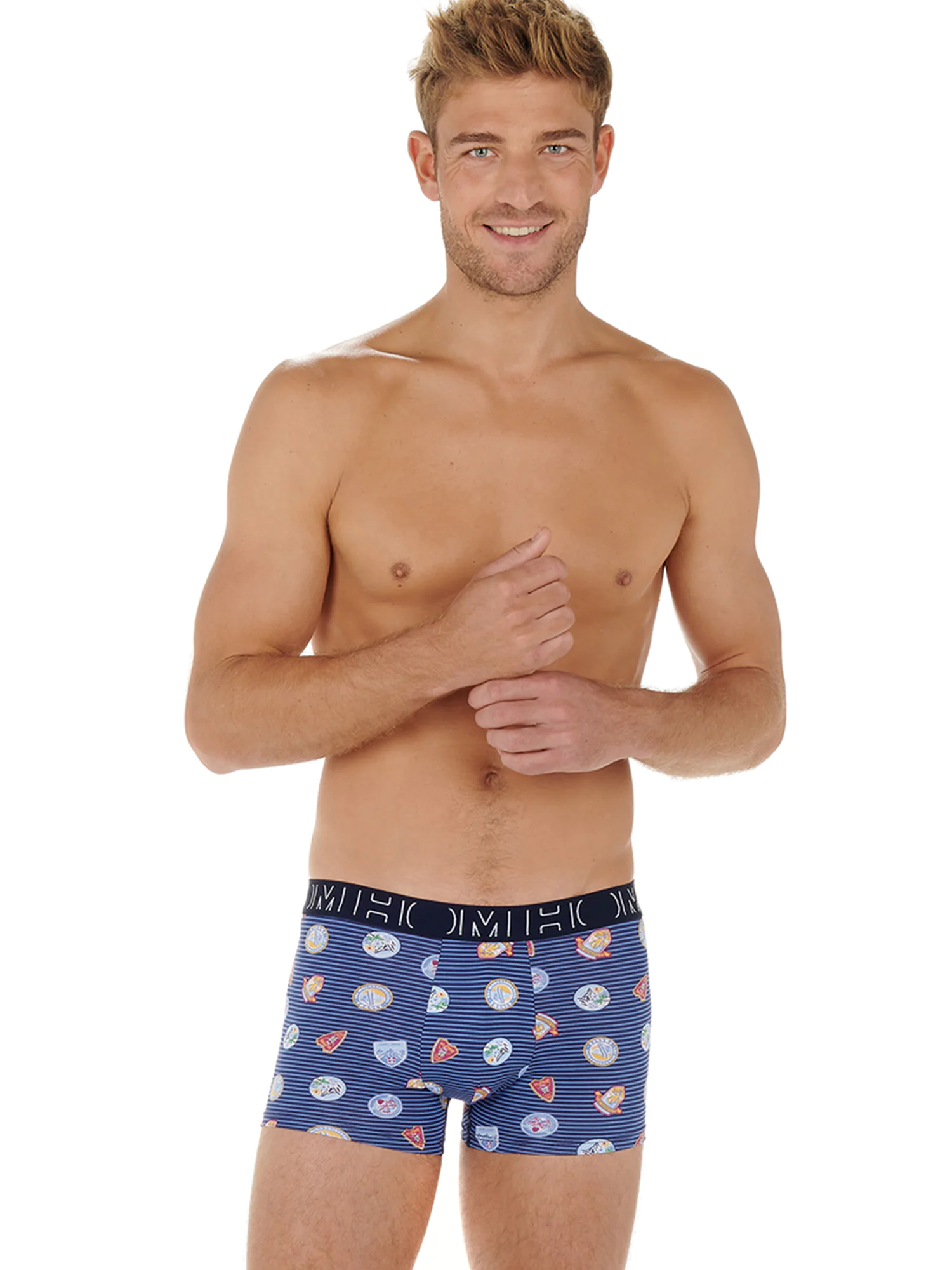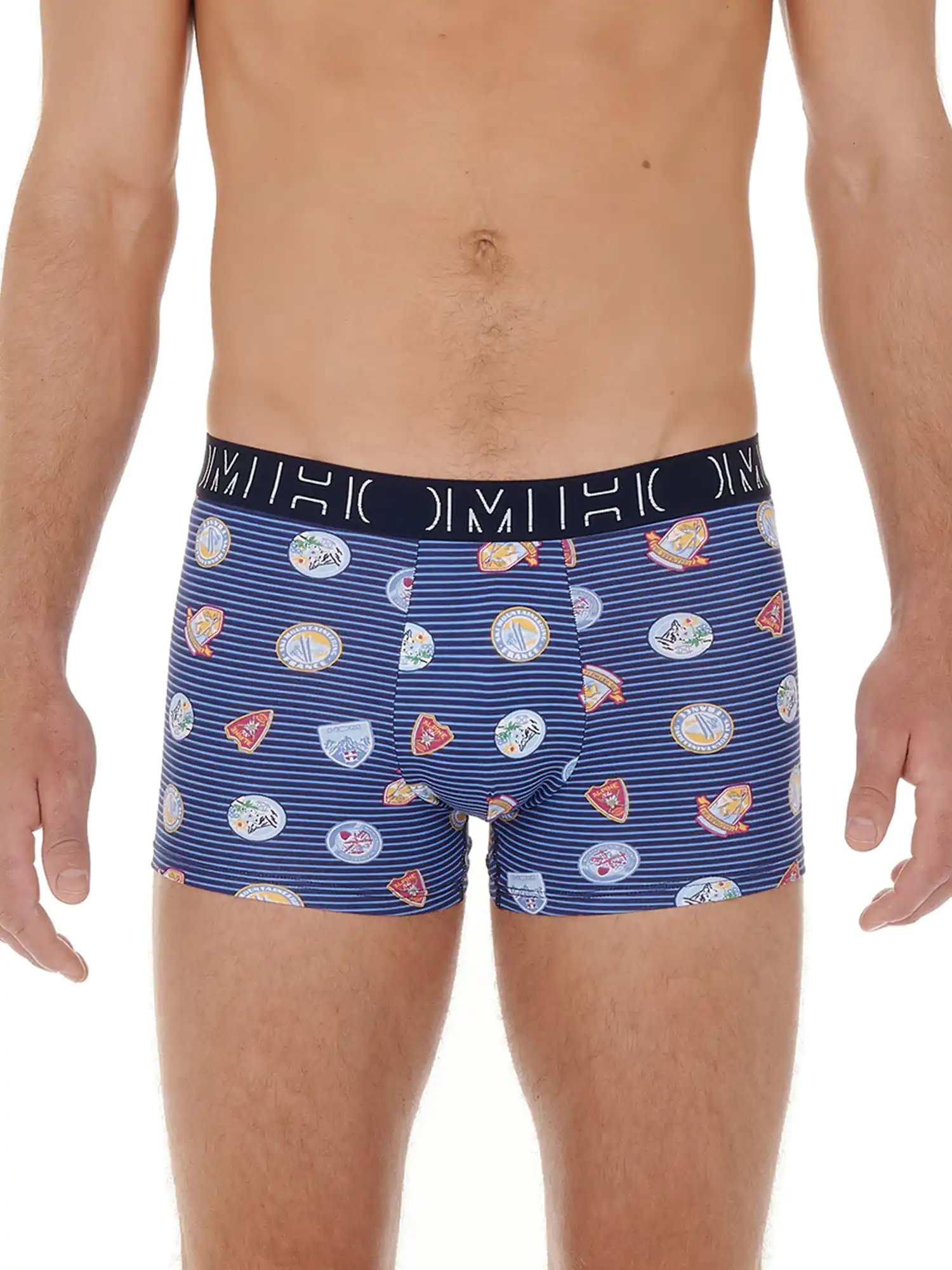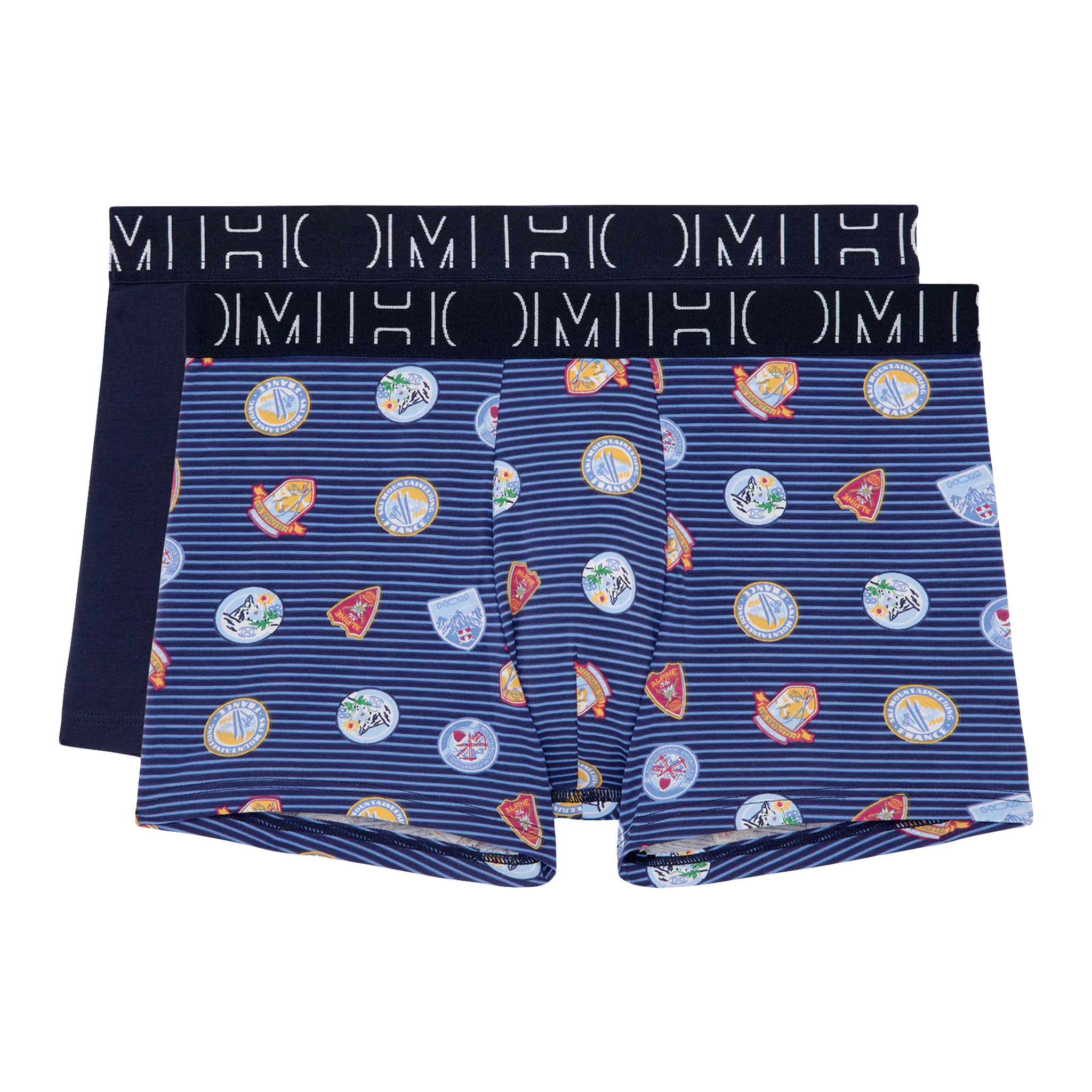 2p Boxer Briefs - Alf to niedrogi zestaw 2-pak. Bokserki są częścią serii HOM BOXERLINES i są wykonane z czesanego bawełnianego stretchu. Te męskie bokserki są odpowiednie do codziennego użytku i mają kieszeń z przodu dla dodatkowego wsparcia i komfortu. Seria BOXERLINES jest wykonana z lżejszej jakości bawełny niż pojedyncze opakowania. Alf zawiera jedną bokserkę w jednolitym granatowym kolorze i jedną bokserkę z nadrukiem z emblematami sportów zimowych.