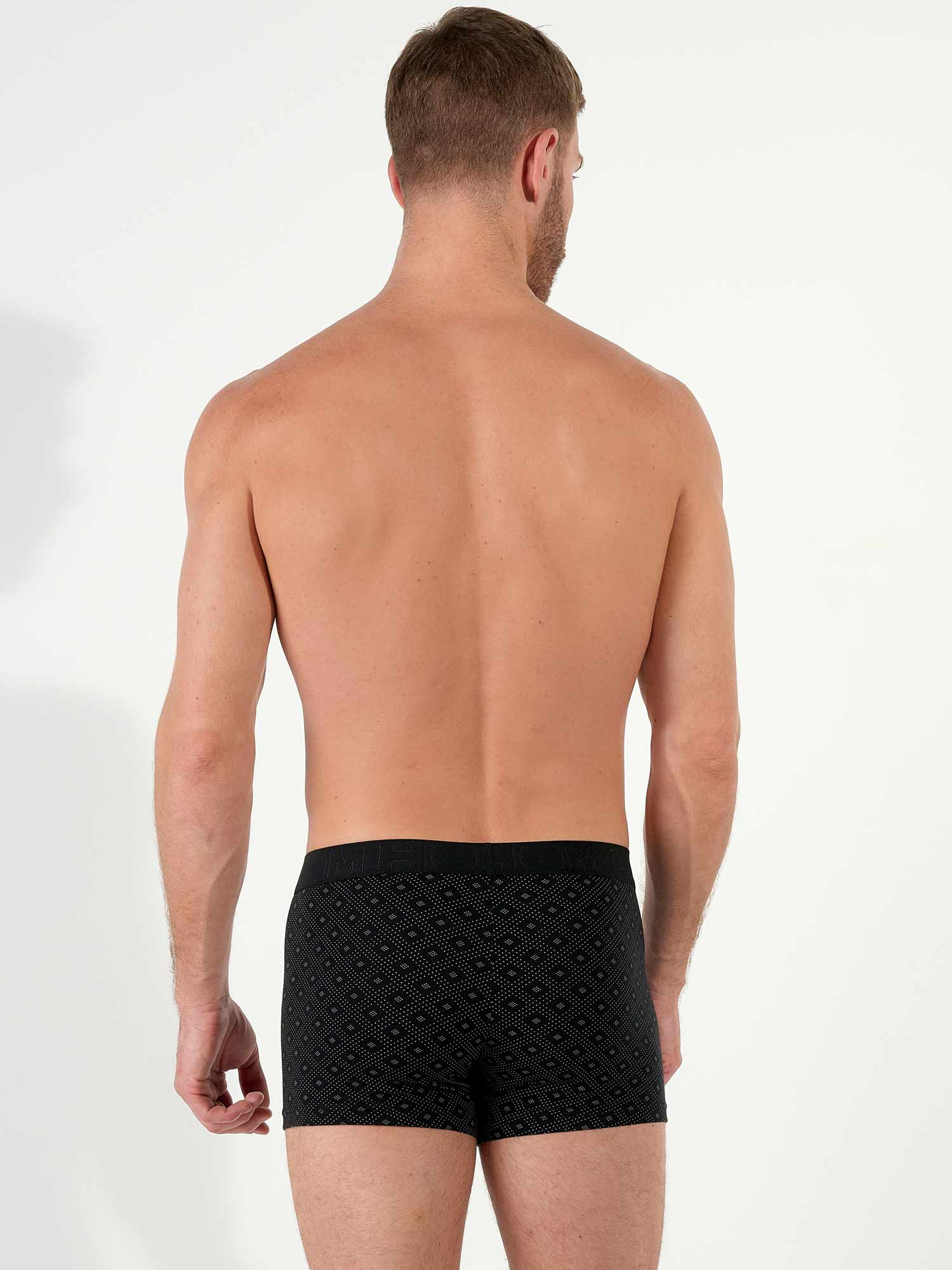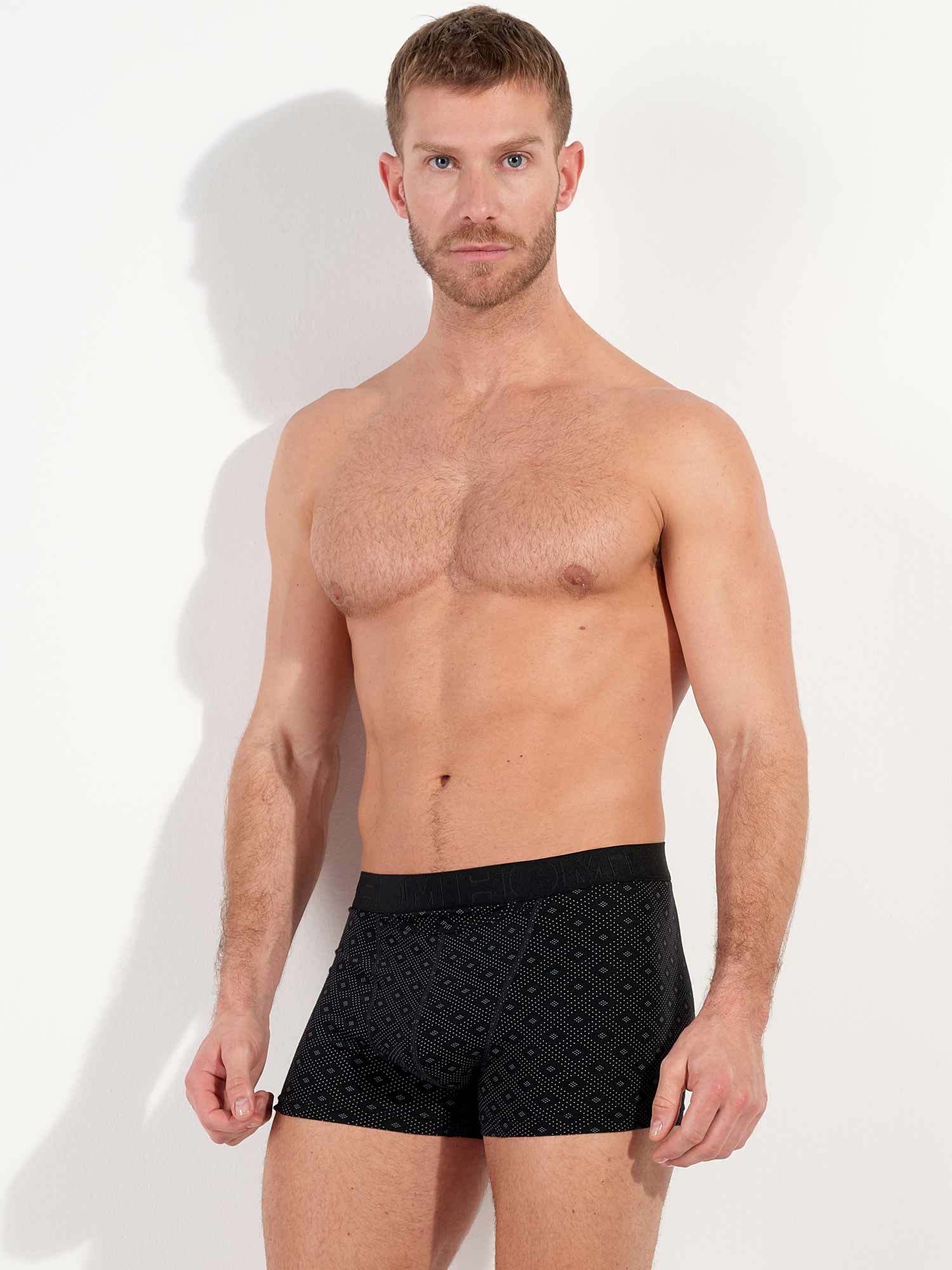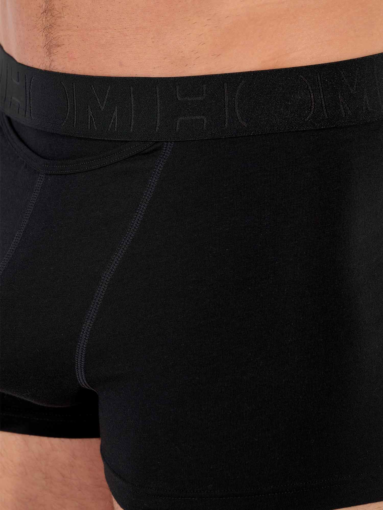 Il set include un boxer nero tinta unita e uno con una raffinata microstampa in stile cravatta. La tasca anteriore è foderata per un supporto extra, mentre la cintura elastica presenta il logo HOM lungo tutta la circonferenza. Una scelta ideale per chi cerca comfort e stile.