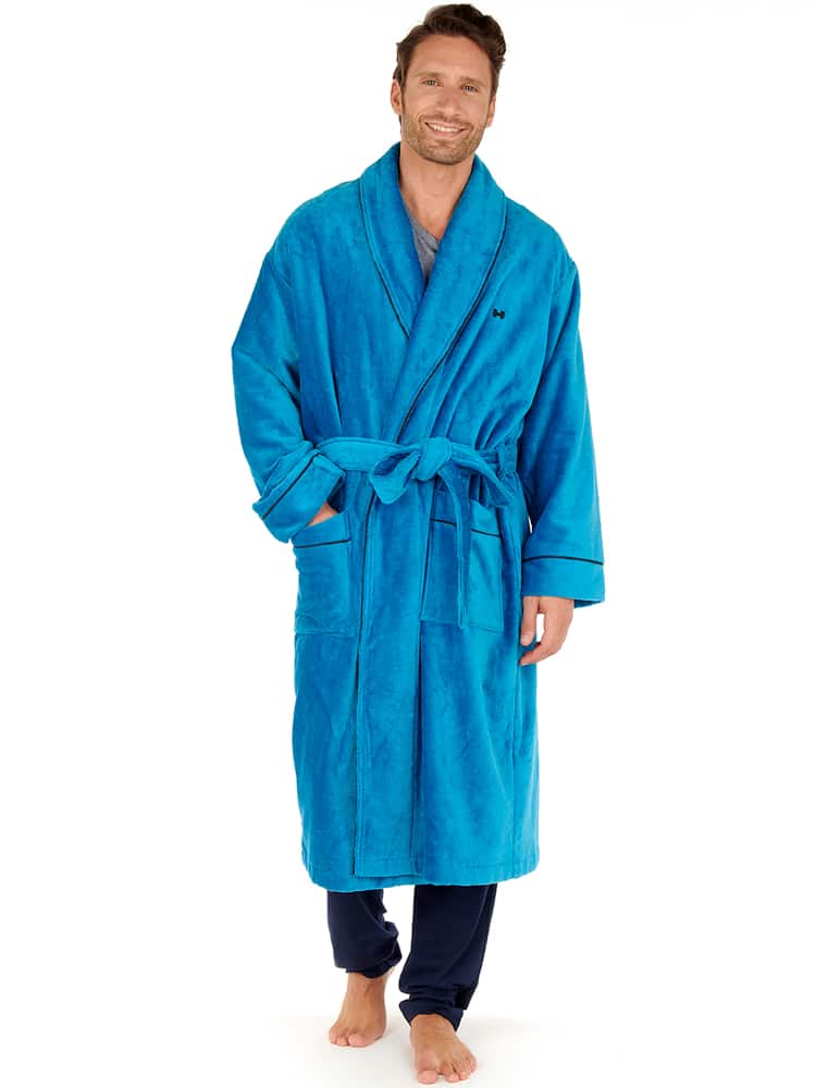 Charlie to szlafrok w pięknym niebieskim kolorze. Szlafrok wykonany jest w 90% z bawełny, która dobrze pochłania wilgoć, oraz w 10% z poliestru, co sprawia, że jest miększy niż szlafrok w 100% bawełniany. Idealny do noszenia w saunie lub do utrzymania ciepła w komfortowy sposób.