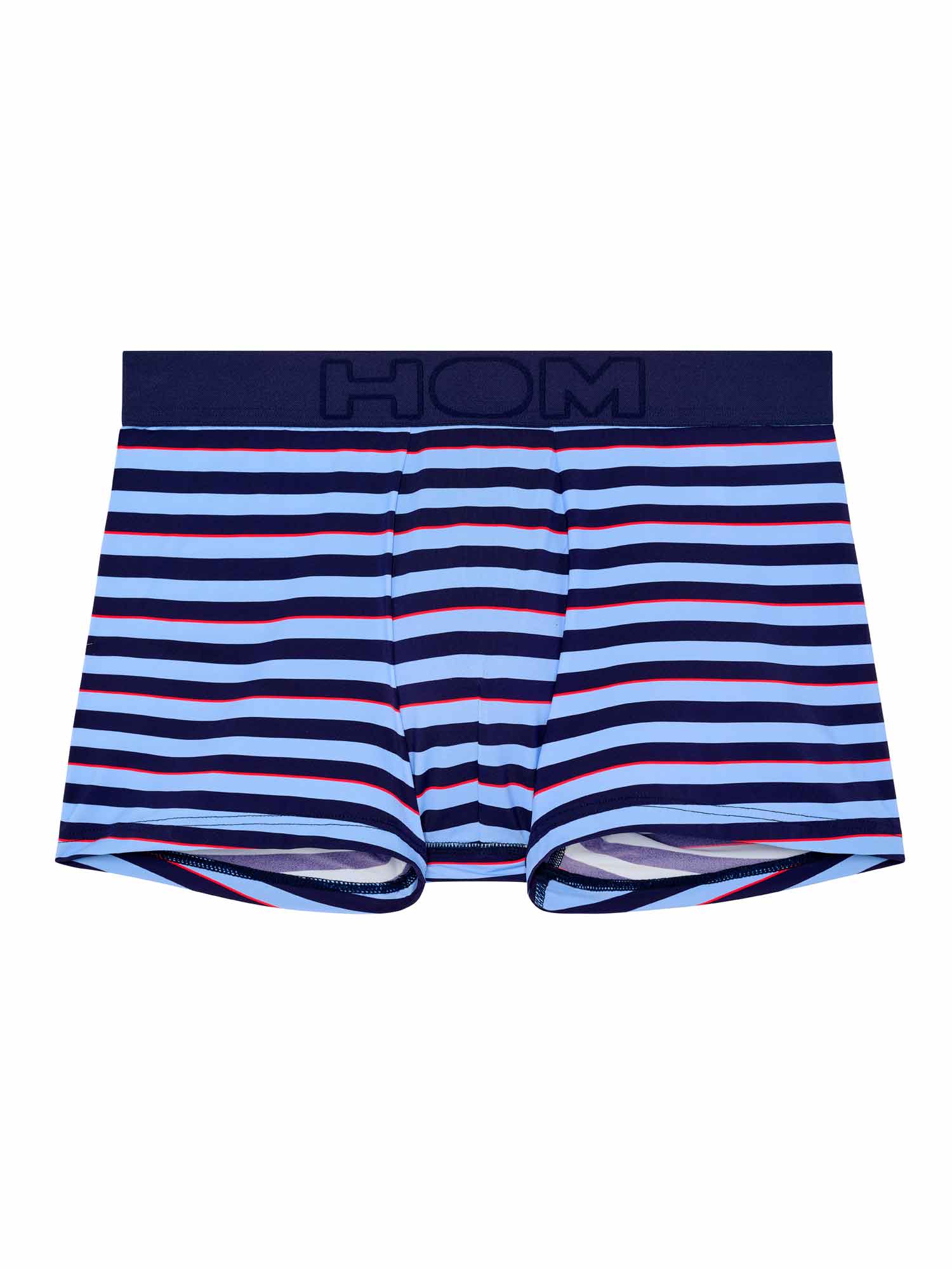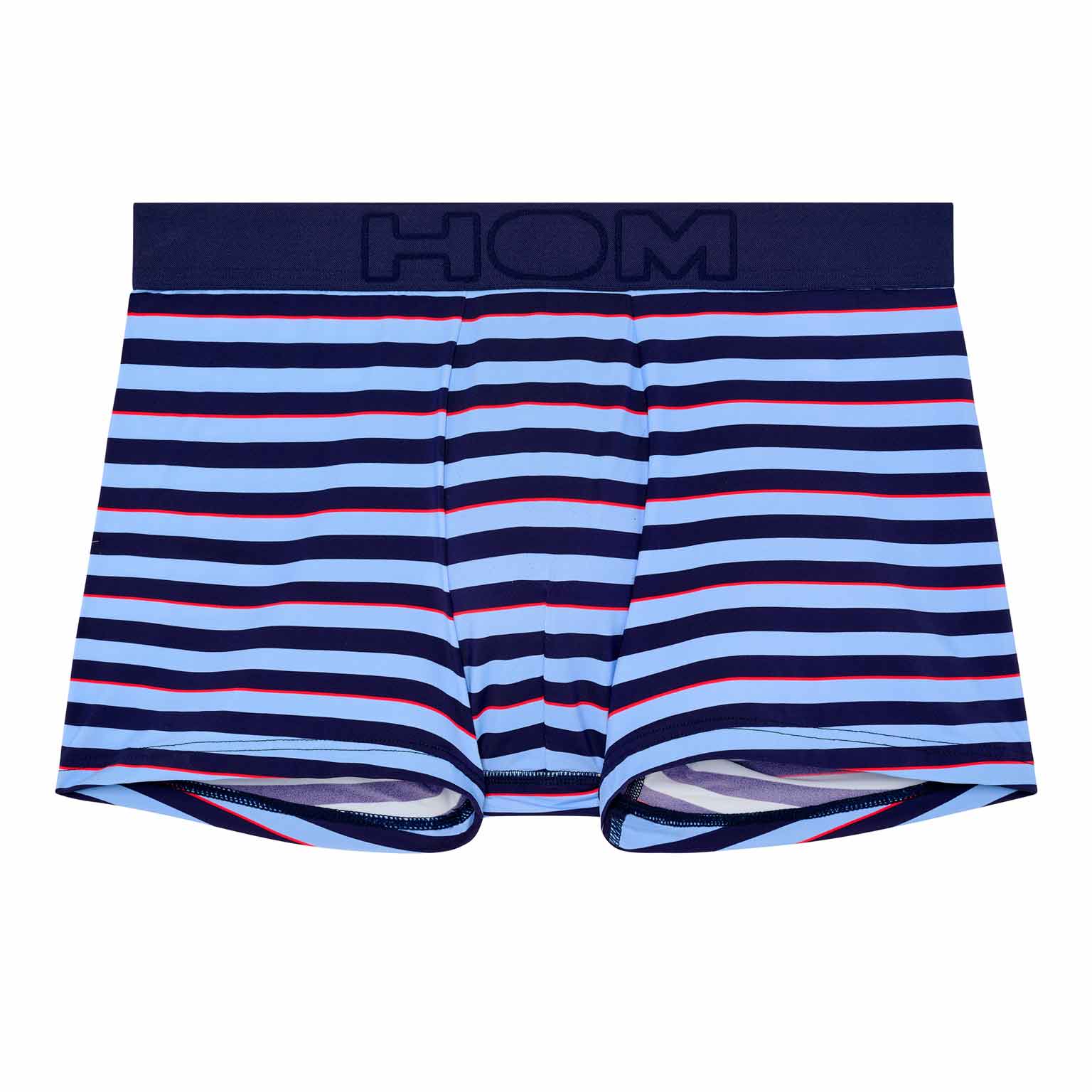 Bokserki HOM Atlantic wyróżniają się odważnym marynistycznym stylem, czyste paski w odcieniach niebieskiego i czerwonego na granatowym tle nawiązują do świata morza i żeglarstwa. Wykonane z gładkiej, lekkiej mikrofibry, są miękkie w dotyku i świetnie trzymają formę. Dyskretna wewnętrzna gumka z przodu zapewnia komfortowe podtrzymanie, a delikatne wykończenie z woalu przy nogawce pomaga ograniczyć podwijanie i nadaje sylwetce lekkości. Całość uzupełnia bezszwowy pas HOM oraz odczepiana metka pielęgnacyjna dla większej wygody.