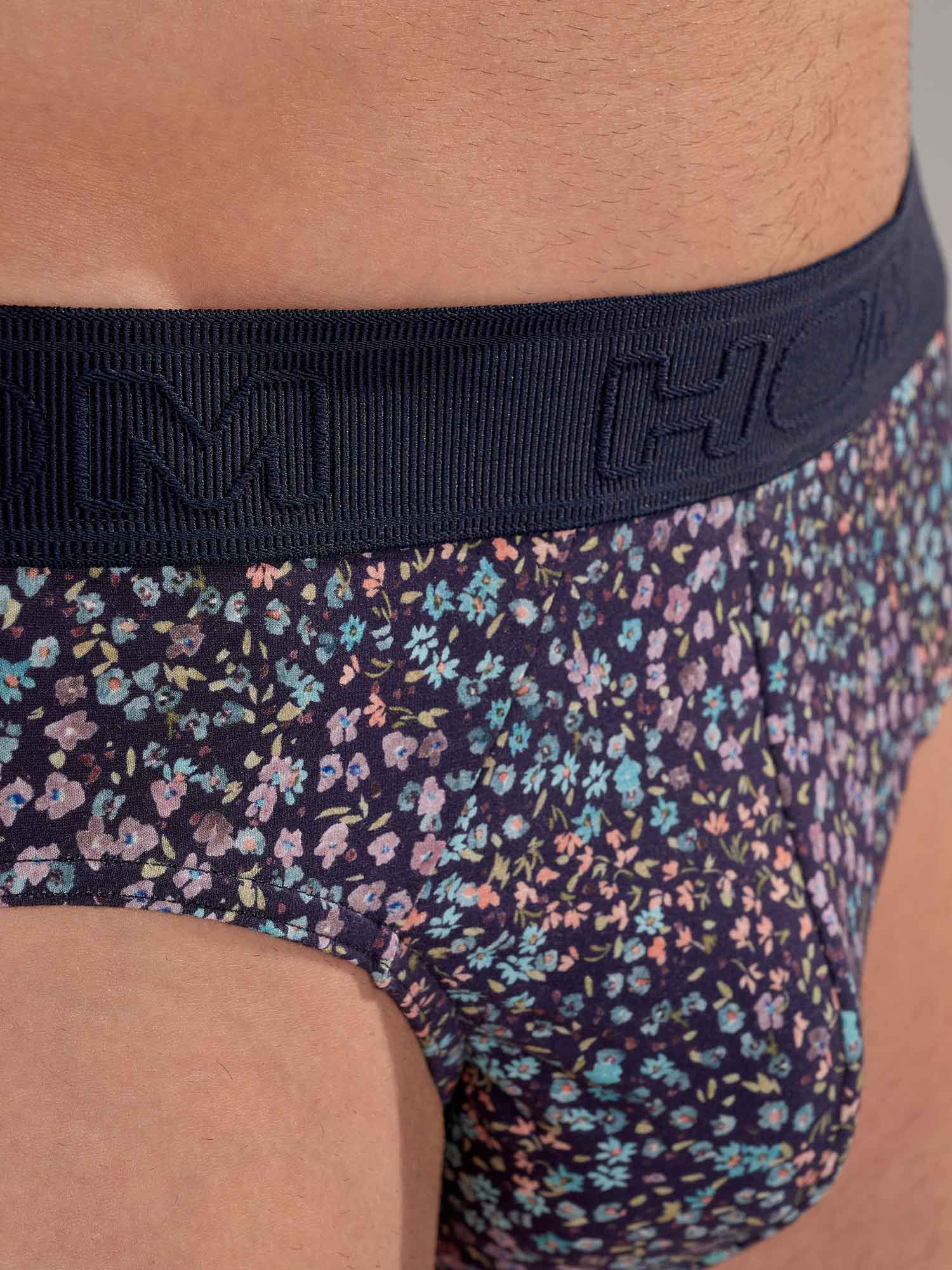 Vineyard Mini Briefs wprowadzają do męskiej bielizny ponadczasową elegancję kwiatowych motywów inspirowanych stylem Liberty. Subtelny pastelowy nadruk w odcieniach pudrowego różu, aqua zieleni i jasnego błękitu nawiązuje do romantycznej atmosfery epoki wiktoriańskiej, zachowując przy tym nowoczesny i czysty wygląd. Krój mini slipów dobrze układa się na biodrach, zapewniając smukłą sylwetkę i wygodę na co dzień, a szeroki, miękki pas z logo HOM pozostaje na miejscu bez rolowania.