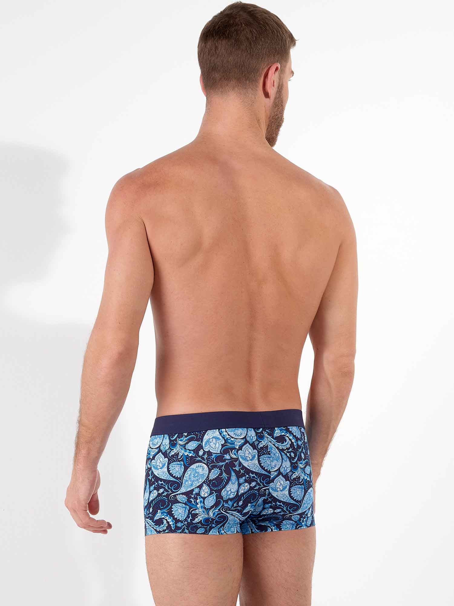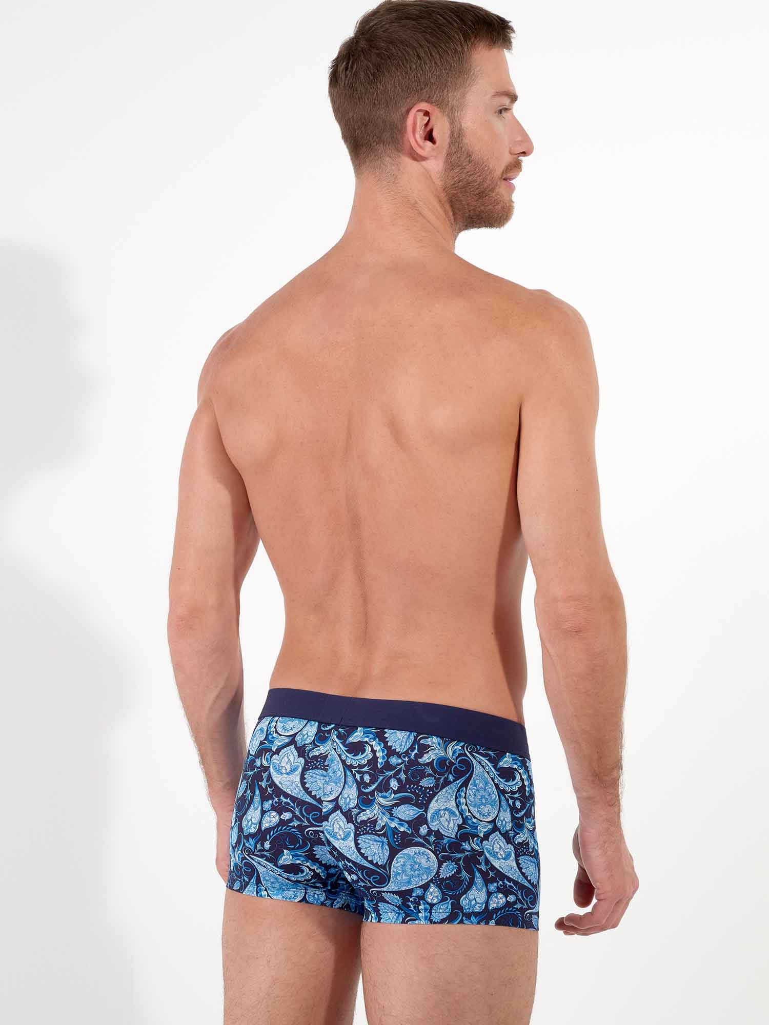 Buchanan – trunk łączy nowoczesny krój z klasycznym wzorem paisley w eleganckich odcieniach niebieskiego. Mikrofibra dopasowuje się do ciała niczym druga skóra, jest oddychająca, szybko schnie i doskonale sprawdza się na co dzień oraz przy aktywnym trybie życia. Model trunk nosi się niżej na biodrach i jest obowiązkowym elementem garderoby stylowego mężczyzny.