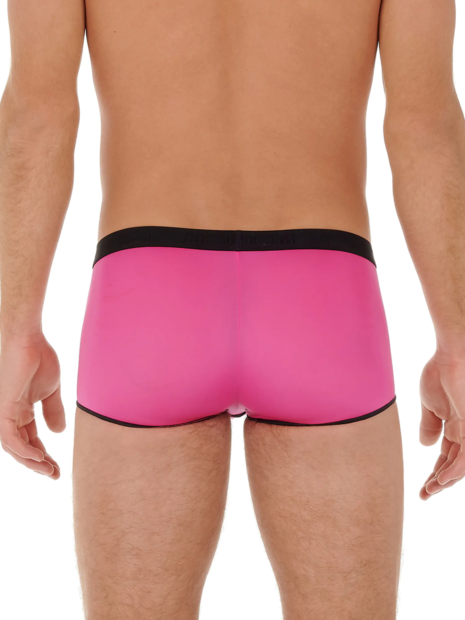 Trunk HO1 - Plume Up to plumes trunk z poziomym otwarciem! Plumes wykonane są z miękkiej i lekkiej mikrofibry dla maksymalnego komfortu noszenia. Ta unikalna wersja jest tymczasowo dostępna w jednolitych kolorach niebieskim, czerwonym, czarnym i pomarańczowym. Szorty mają wąskie linie w kontrastowym kolorze, co nadaje im nowoczesny, retro wygląd. Oprócz poziomego otwarcia, te trunk mają również kieszonkę "push-up" z przodu, która zwiększa wsparcie dla dodatkowego komfortu i subtelnie podkreśla męską anatomię. Elastyczny pas jest szerszy niż w zwykłych plumes i posiada logo HOM na pasku.