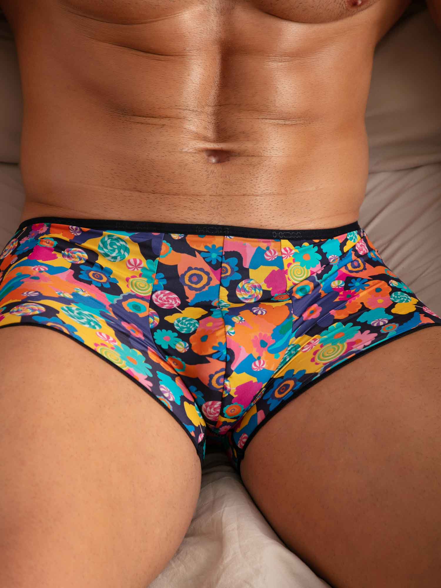 Trunk Wonka z kolekcji HOM Temptation to coś więcej niż zwykła bielizna. Wykonany z kultowego materiału Plume marki HOM, ultralekki mikrowłókno doskonale przylega do ciała i porusza się niczym druga skóra. Wzór łączy kolorowe cukierki z halucynogennymi kwiatami, tworząc zabawny, ale uwodzicielski wygląd. Model dla pewnych siebie mężczyzn, którzy wyznaczają własne zasady.
