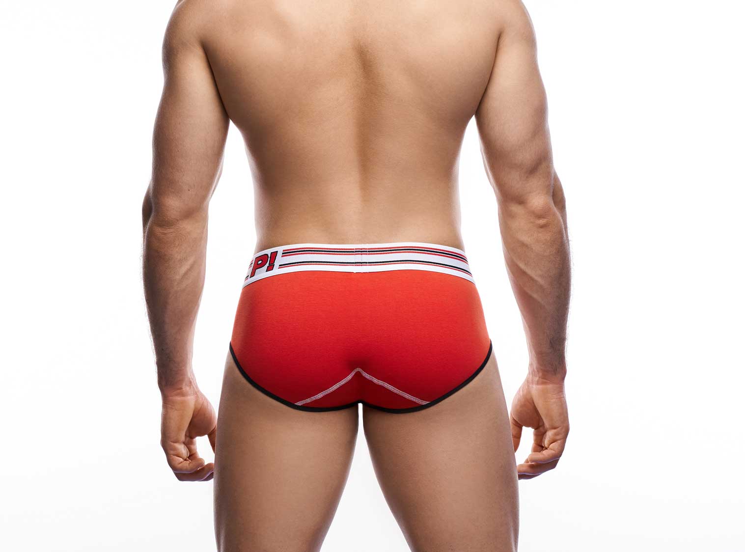 Model Circuit - Brief charakteryzuje się wytrzymałym czerwonym korpusem wykonanym z bawełny i czarną miseczką z siateczki mikrofibrowej zaprojektowaną z myślą o sportowym wyglądzie. Slip Circuit ma odważny pas z wyścigowymi paskami, który wrzuca cię na najwyższe obroty. Jakby to nie wystarczyło, aby przyciągnąć uwagę ludzi!