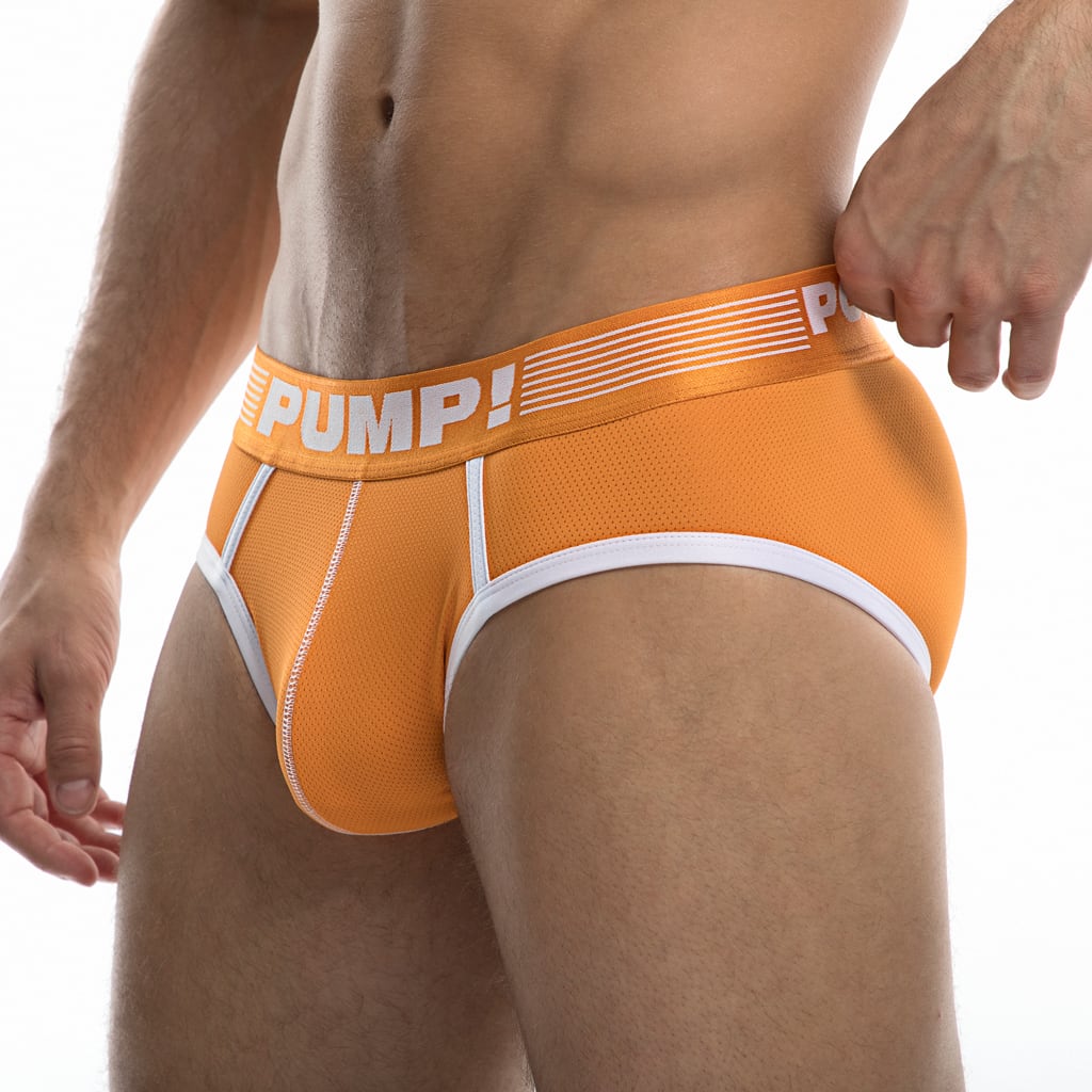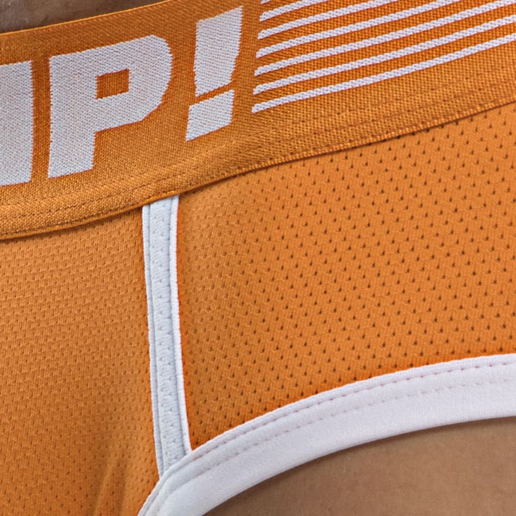 Creamsicle Brief łączy idealne dopasowanie z vintage'owym designem, tworząc seksowny wygląd, który nigdy nie wychodzi z mody. Te slipy dla mężczyzn od PUMP! są zaprojektowane dla wygody i mają uderzający pas PUMP! o wysokości 4 cm. Slipy są wykonane z miękkiej tkaniny i mają miseczkę wykonaną z mikrosiatki, co zapewnia lepszą oddychalność. Z Creamsicle nie możesz się pomylić. Wykonane w kolorze pomarańczowym z białymi kontrastowymi szwami i lamówkami.
