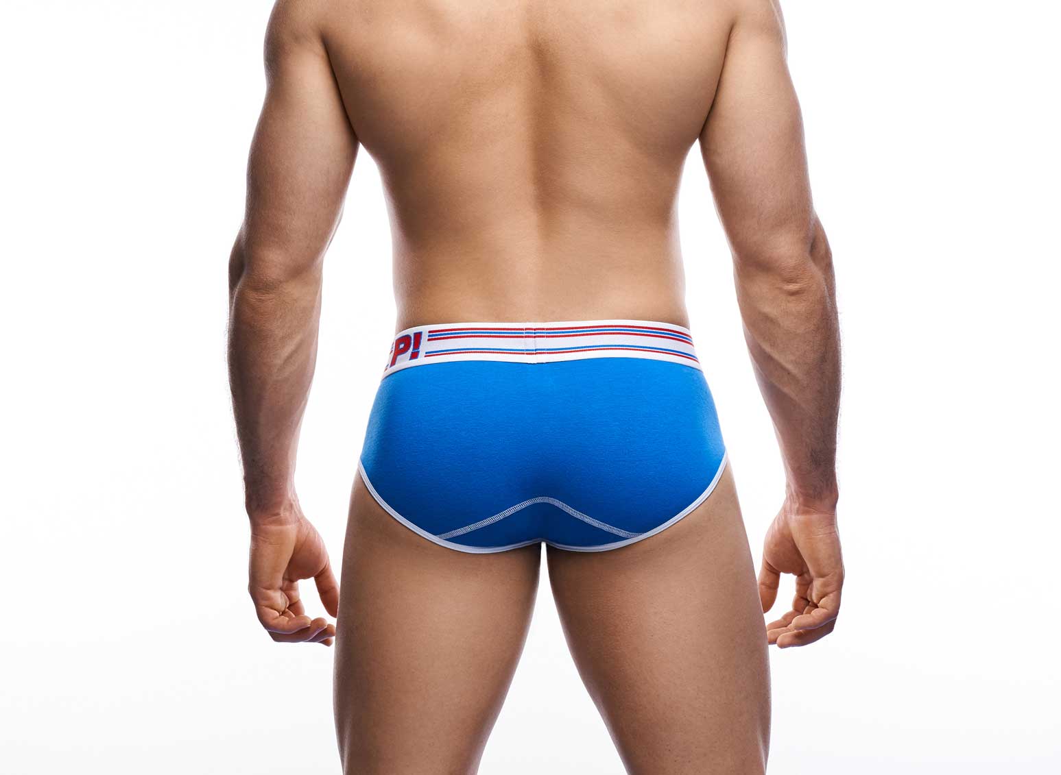 The Velocity Brief posiada efektowne niebieskie ciało wykonane z bawełny i czarną miseczkę z mikrofibry zaprojektowaną z myślą o sportowym wyglądzie. The Velocity Brief posiada odważny pas z paskami wyścigowymi, który wprawia cię w nadbieg. Jeśli to nie wystarczy, aby ludzie zatrzymali się i zwrócili uwagę!