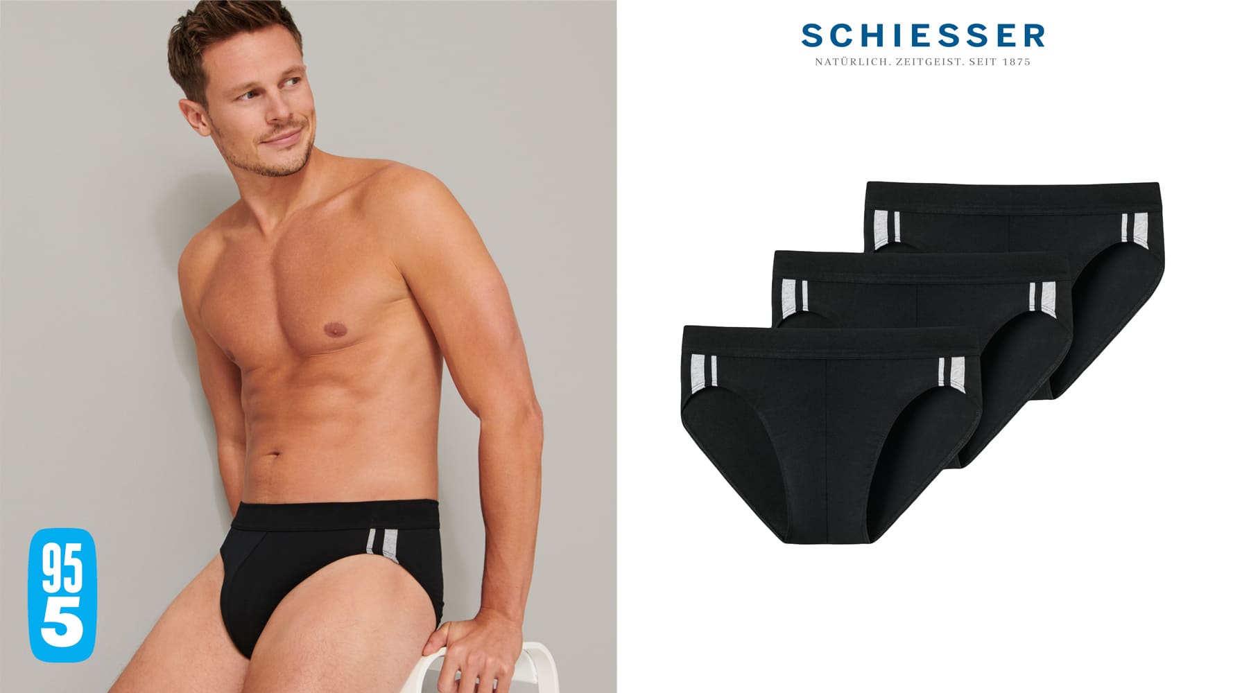 3 slipy Rio SCHIESSER dla mężczyzn z dobrze znanej serii 95/5, dostępne w zestawie wielopakowym. Męskie slipy dostępne są w różnych kolorach, z kontrastowymi liniami po bokach. Miękka talia zapewnia najlepszy komfort noszenia. Slipy Rio noszone są na biodrach i mają wysoko wycięty krój. Wykonane z organicznej bawełny o komfortowej, elastycznej jakości jerseyu.