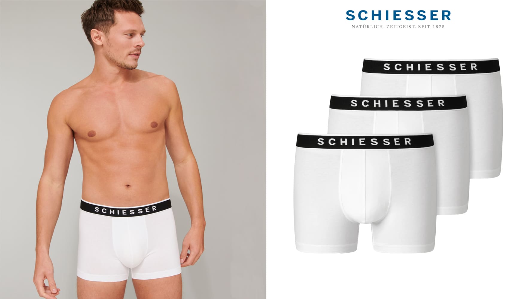 Zestaw 3 bokserek z popularnej serii 95/5 marki Schiesser. Idealne bokserki do codziennego użytku dla każdego mężczyzny. Bokserki mają wygodną, tkaną, elastyczną talię o sportowym wyglądzie, dzięki wyrazistemu białemu logo i kontrastowej linii wzdłuż pasa. Wykonane są z miękkiej, ekologicznie produkowanej bawełny w jakości 95/5, co zapewnia idealne dopasowanie. 3 męskie bokserki w świetnej cenie wykonane w znanej jakości SCHIESSER!