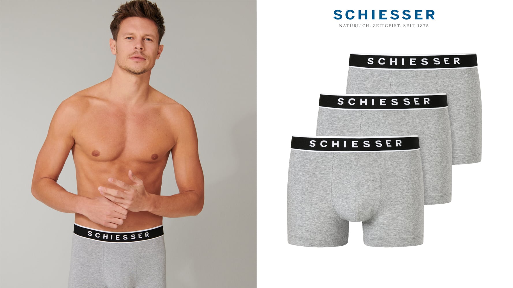 Zestaw 3 bokserek z popularnej serii 95/5 marki Schiesser. Idealne bokserki do codziennego użytku dla każdego mężczyzny. Bokserki mają wygodną, tkaną, elastyczną talię o sportowym wyglądzie, dzięki wyrazistemu białemu logo i kontrastowej linii wzdłuż pasa. Wykonane są z miękkiej, ekologicznie produkowanej bawełny w jakości 95/5, co zapewnia idealne dopasowanie. 3 męskie bokserki w świetnej cenie wykonane w znanej jakości SCHIESSER!