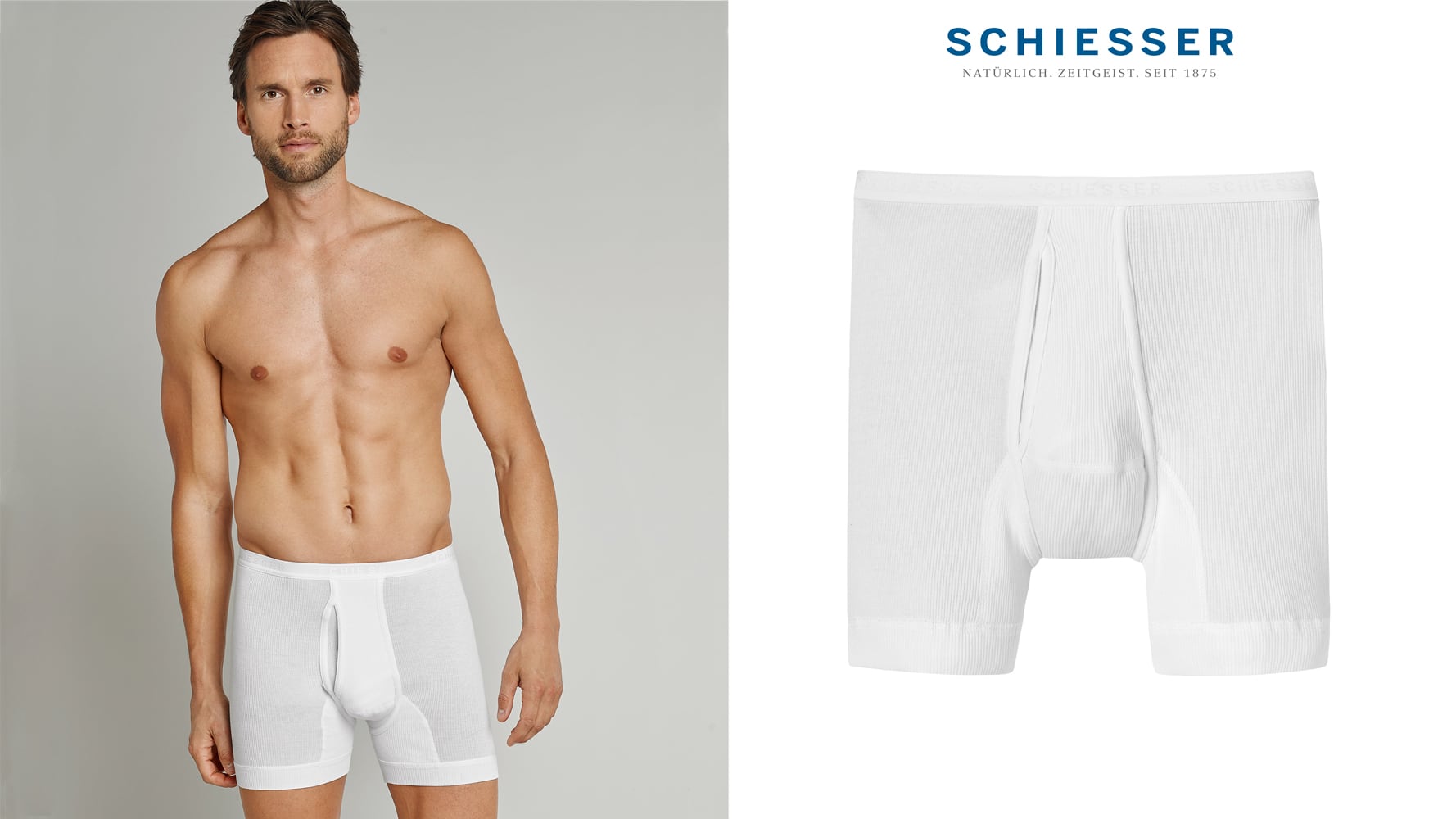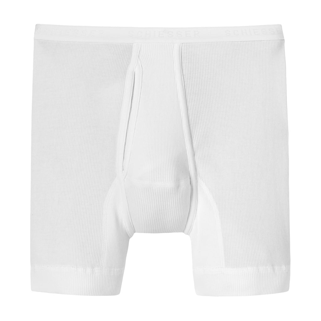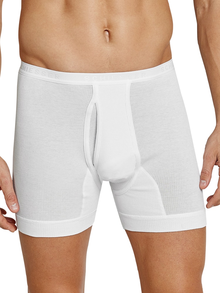 Męska bielizna z podwójnym prążkiem! Te męskie szorty z kolekcji Doppelripp to "Original Classic" marki Schiesser. Te bokserki mają klasyczny krój i są wyposażone w rozporek. Bokserki nosi się na biodrach i zapewniają wyjątkowy komfort dzięki optymalnemu dopasowaniu. 100% dwuwarstwowa bawełna Mako jest również przyjemnie miękka w dotyku, a ponieważ jest wykonana w 100% z bawełny, możesz nawet prać bokserki w temperaturze 95 stopni, nie tracąc ich kształtu. Trwałe, męskie bokserki, które zachowują kształt i posiadają jakość, z której SCHIESSER jest znany!